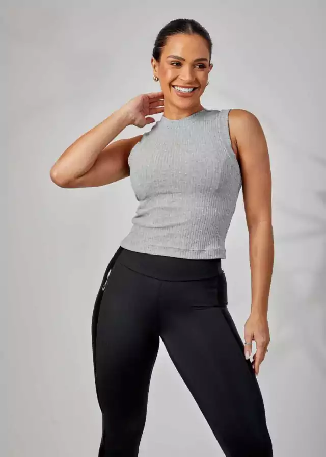 Regata canelada em tecido de Poliamida e Elastano super fresquinha e com modelagem super confortável.